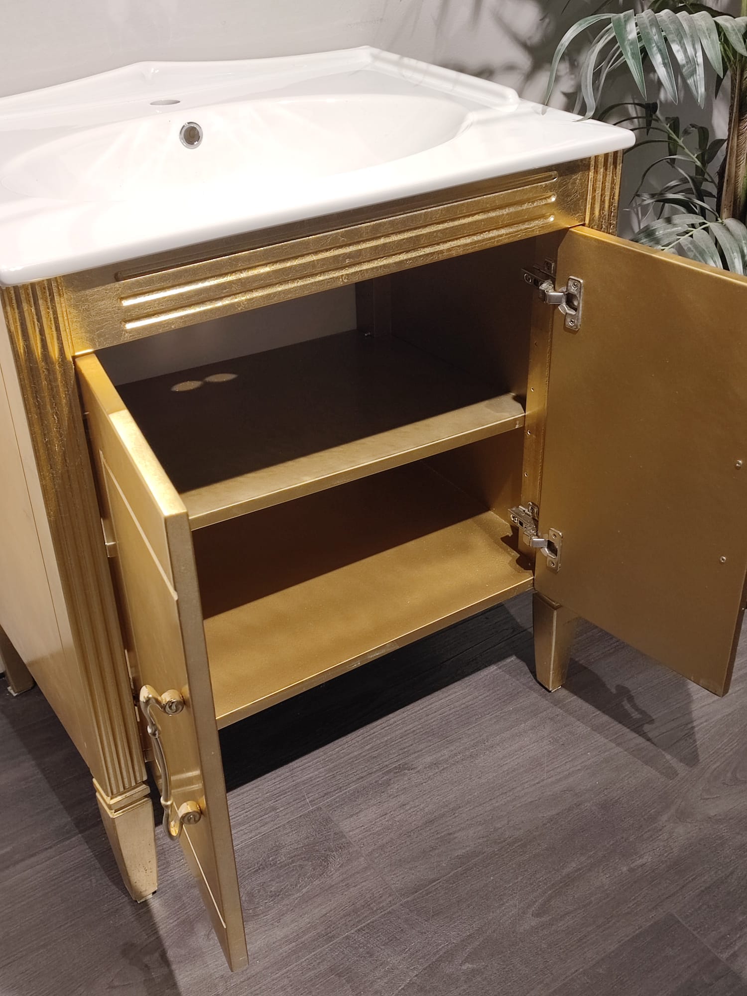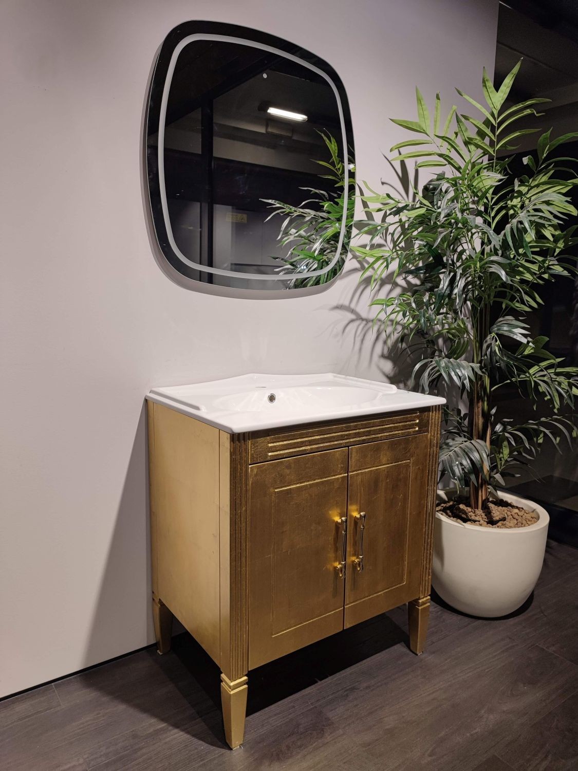 DESCRIZIONE: mobile bagno classico con specchiera con luce led perimetrale, ante con chiusura rallentata e ripiano interno
