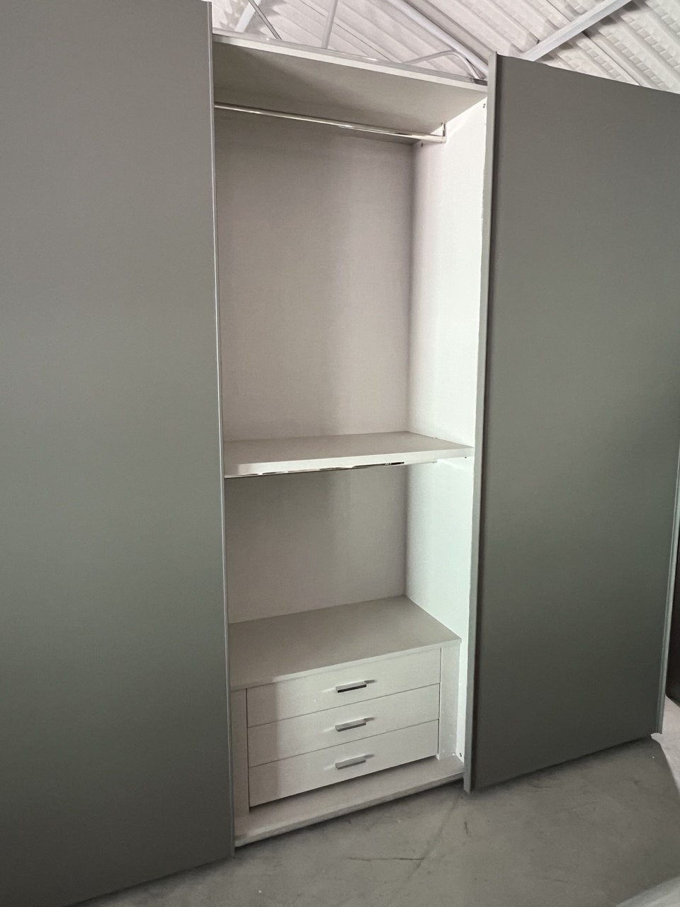 DESCRIZIONE: camera completa di armadio a 3 ante scorrevoli con cassettiera interna, letto imbottito sfoderabile con contenitore, gruppo notte composto da 2 comodini e 1 comò