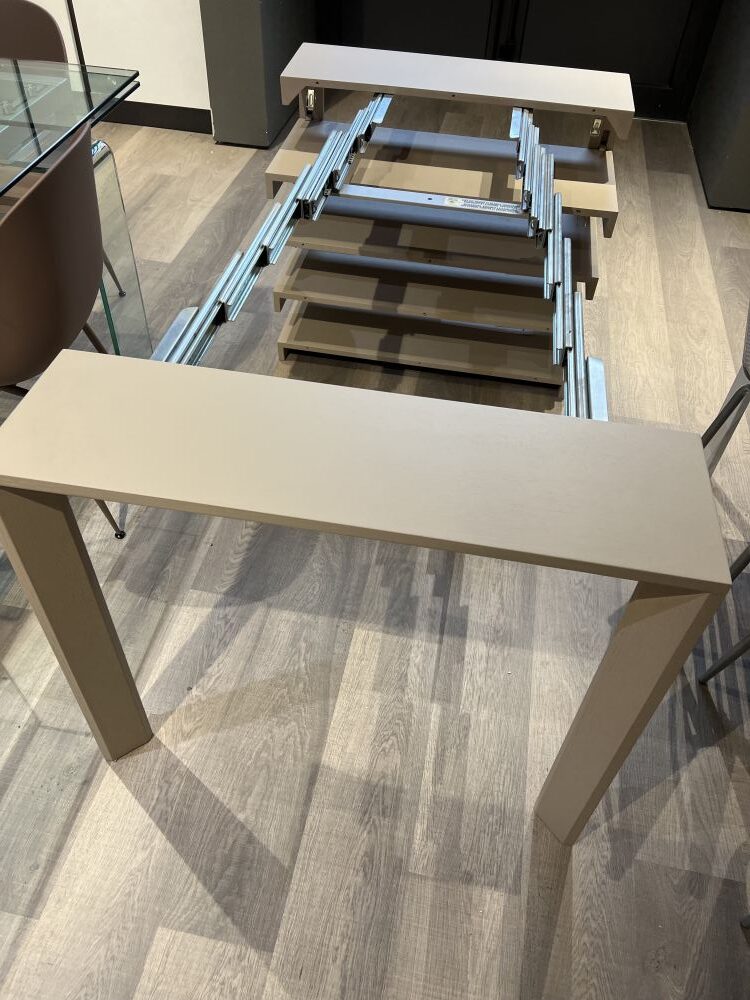 DETTAGLI E FINITURE: Consolle trasformabile in tavolo in legno laccato corda