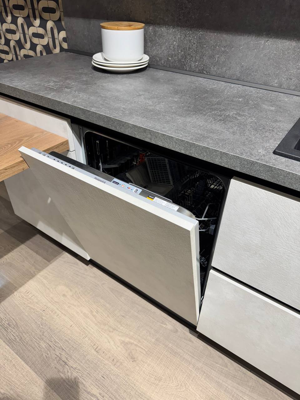 DESCRIZIONE: Cucina Arredo3 completa di 4 elettrodomestici Hotpoint, basi con tavolo penisola e colonne separate