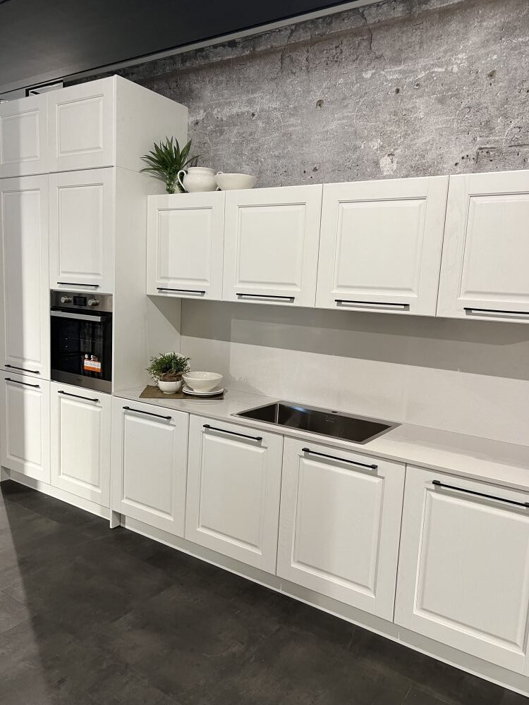 DESCRIZIONE: Cucina Prime Mod. Class completa di elettrodomestici Hotpoint e Bosch. Le colonne possono essere spostate o separate dalla composizione.