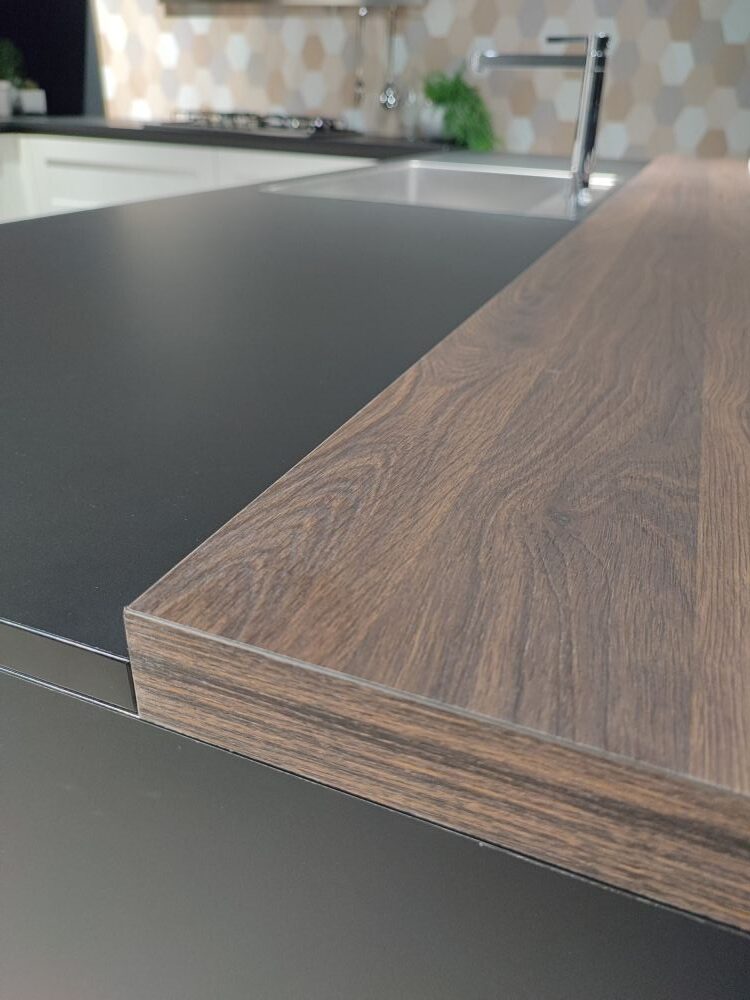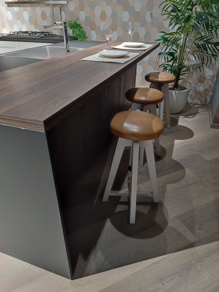 Isola L 246 cm – P 120 cm (60 basi + 60 bancone snack) – H 90,8/92,6 cm