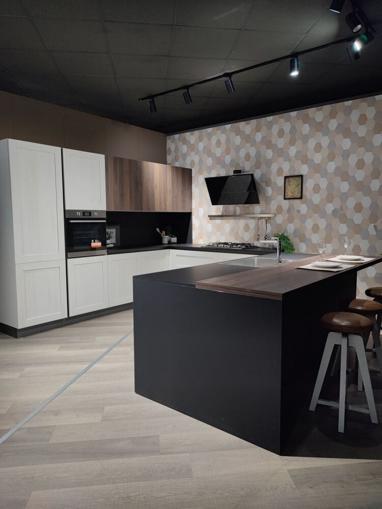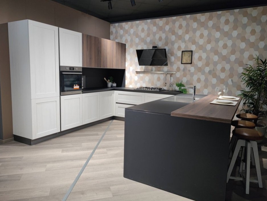 DESCRIZIONE: Cucina con isola pezzo unico outlet completa di elettrodomestici Indesit
