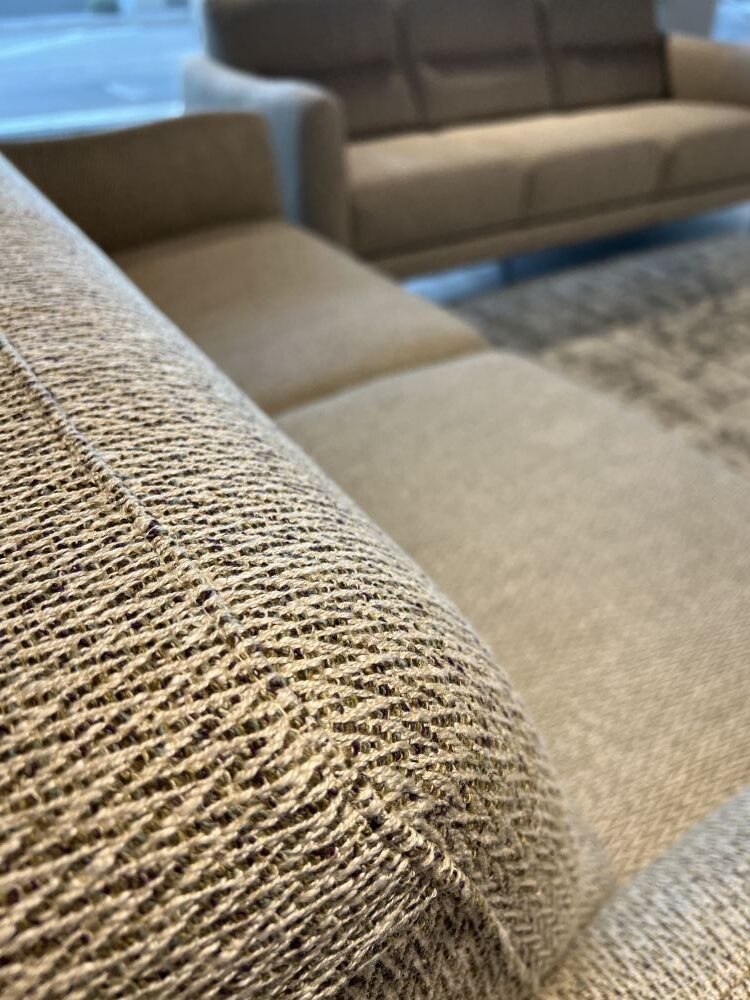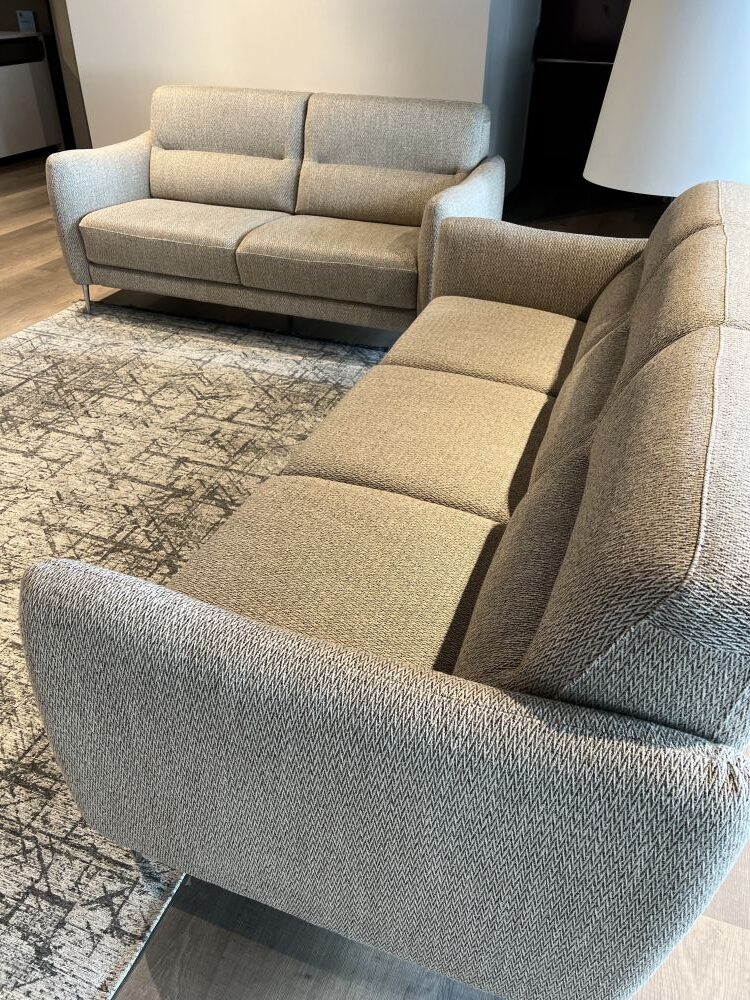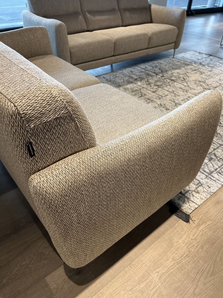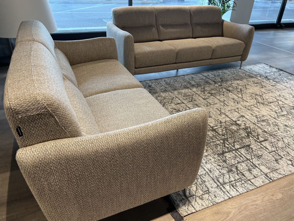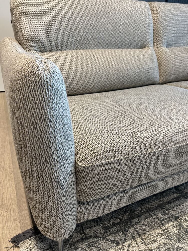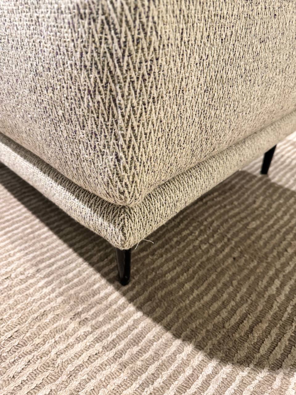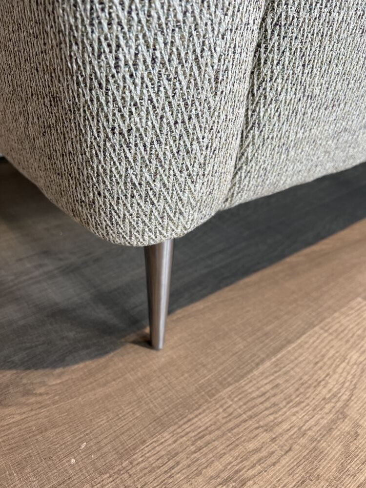 DETTAGLI E FINITURE: salotto non sfoderabile rivestito in tessuto cat. NC Shell col. 801, piede metallo lucido