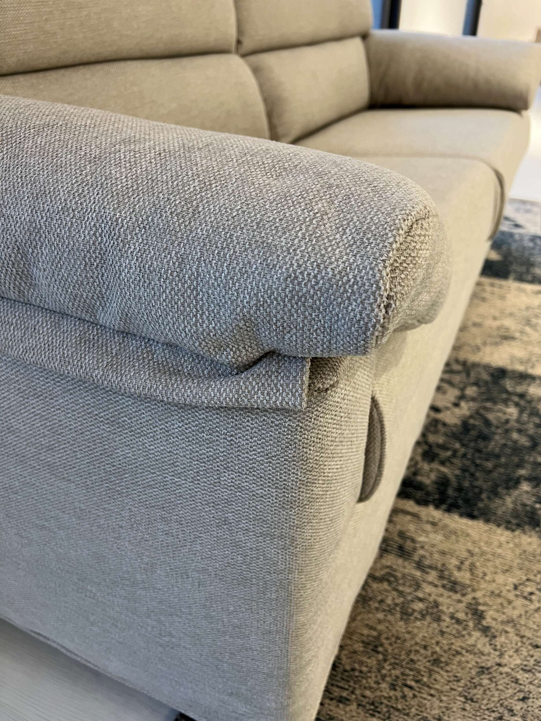 DETTAGLI E FINITURE: rivestito in tessuto sfoderabile art. Joint 601 grigio chiaro con piedini abs neri