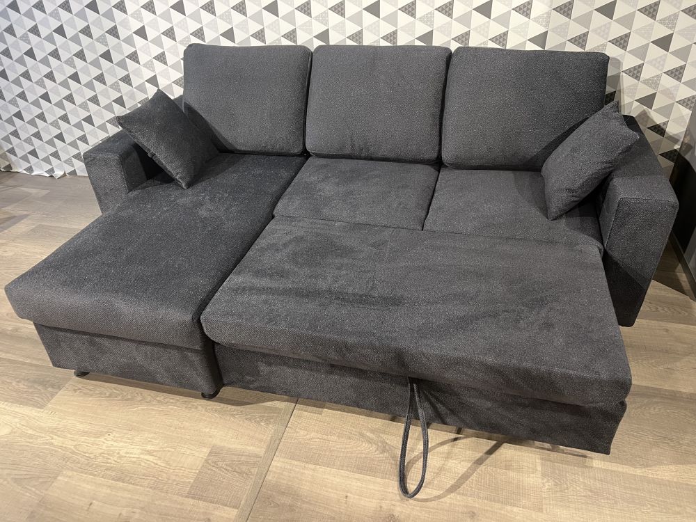 DETTAGLI E FINITURE: rivestimento in tessuto sfoderabile, meccanismo runner e penisola con contenitore