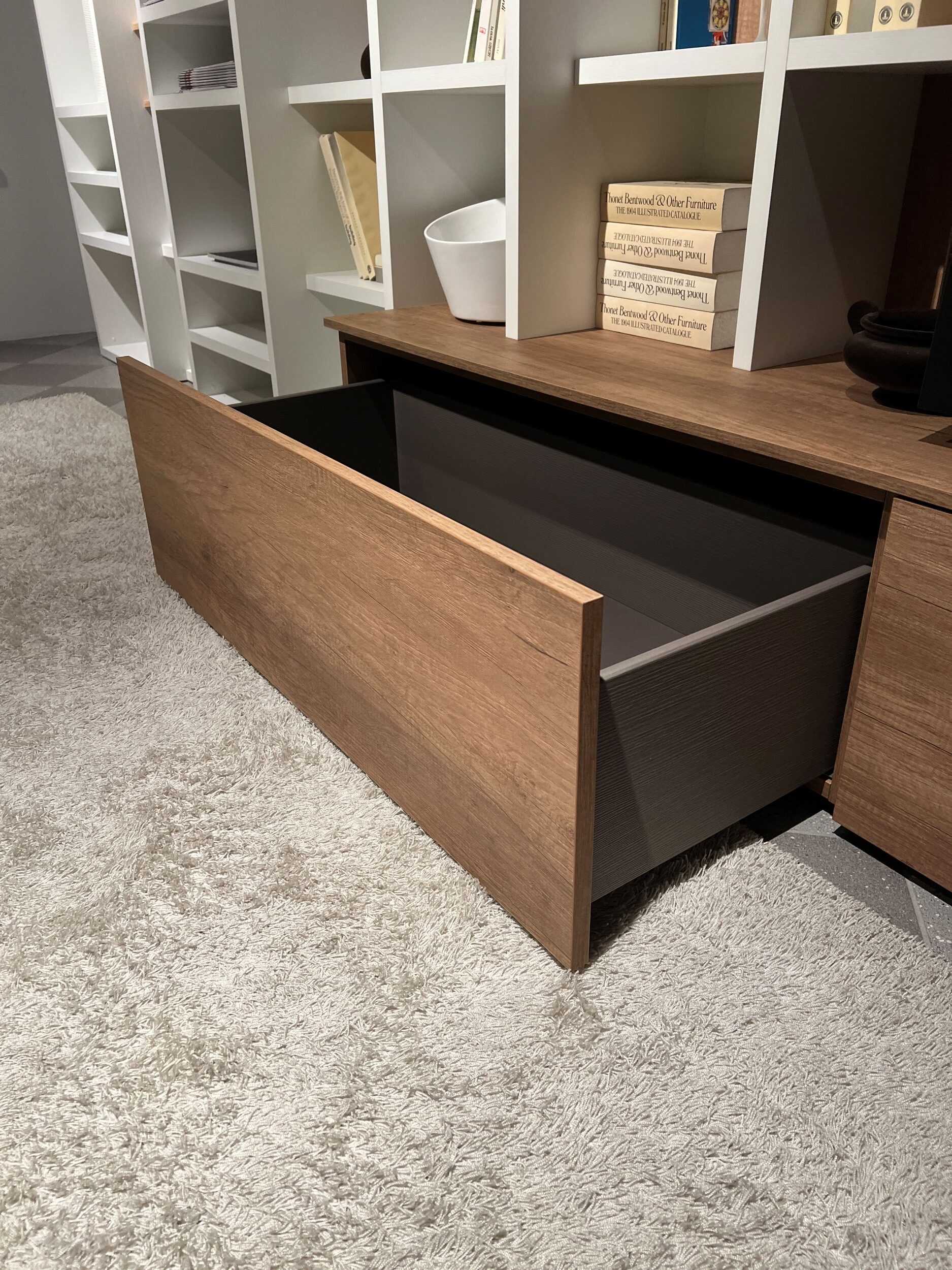 DESCRIZIONE: Libreria spalla con vani ad altezza alternata e cassettiera esterna