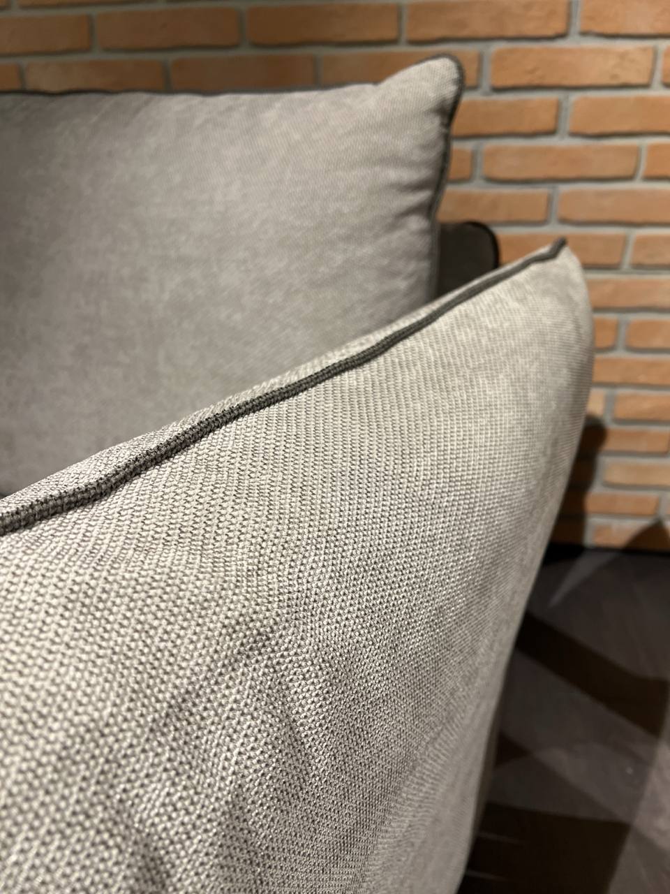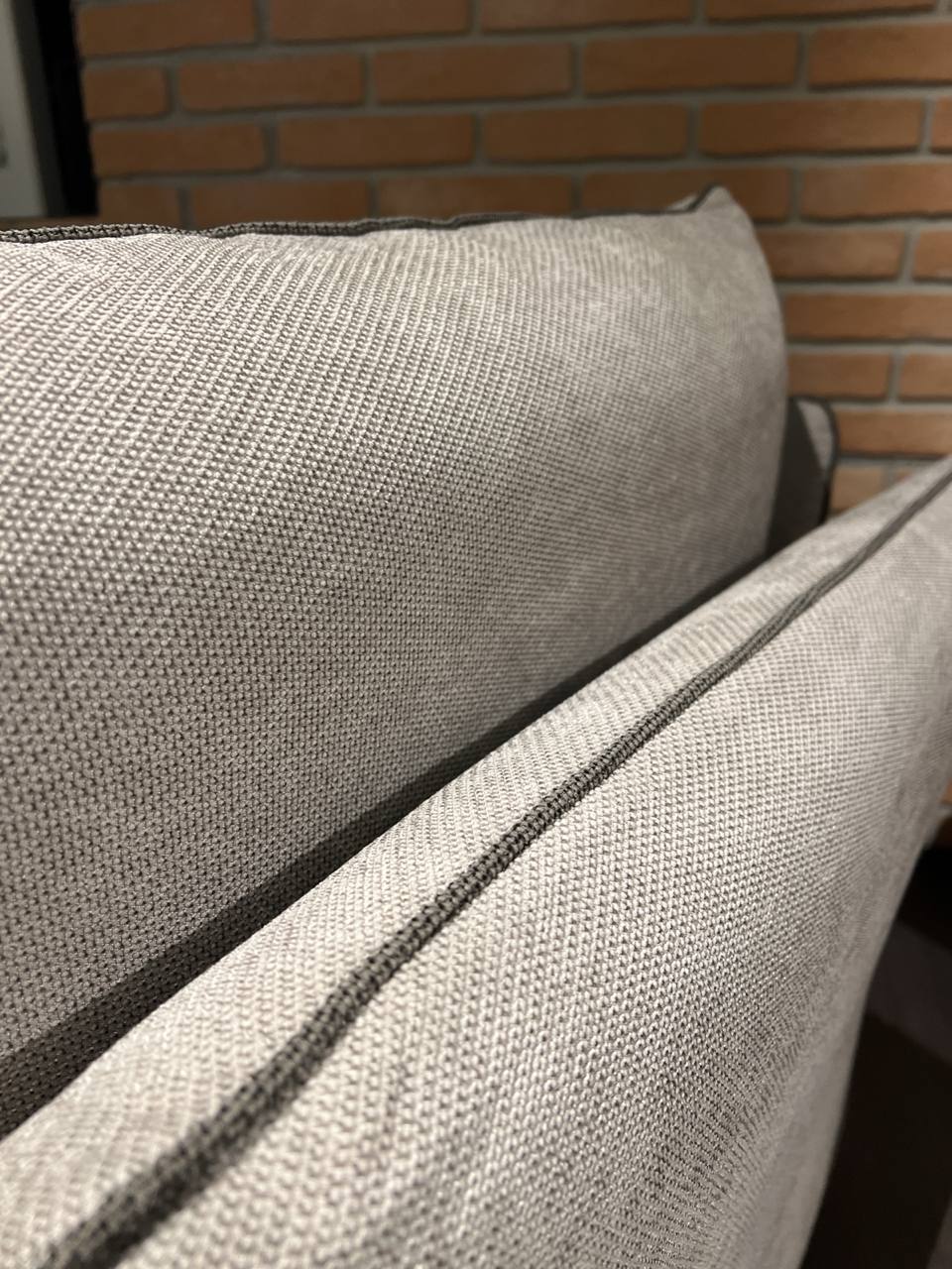 DETTAGLI E FINITURE: rivestita in tessuto tramato con cucitura in contrasto