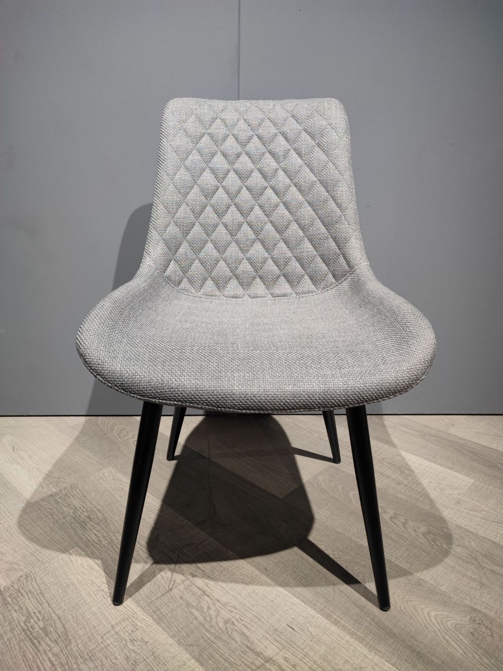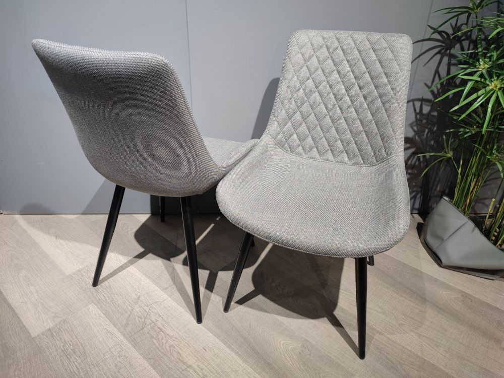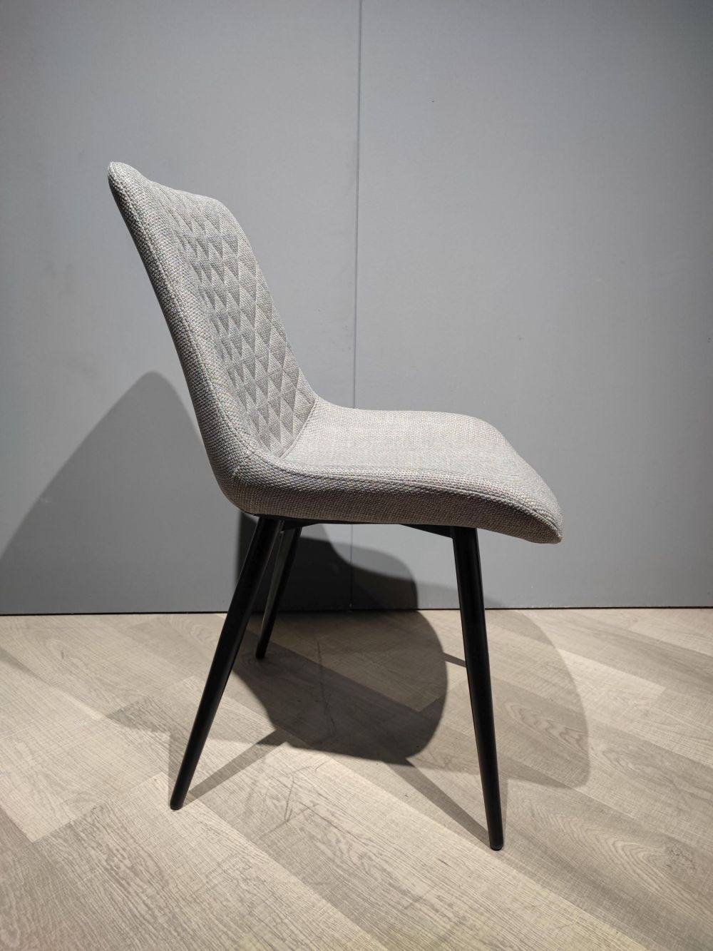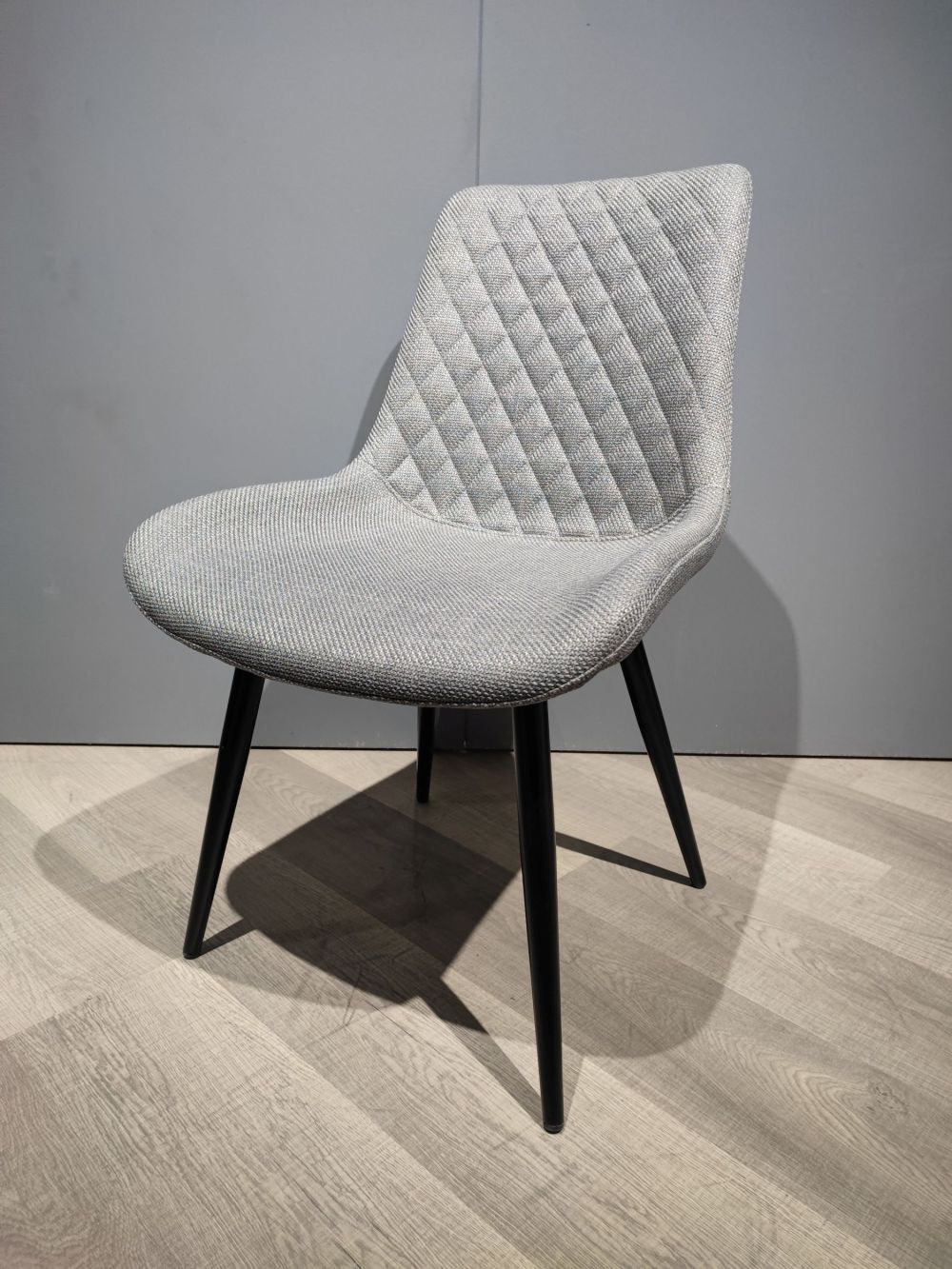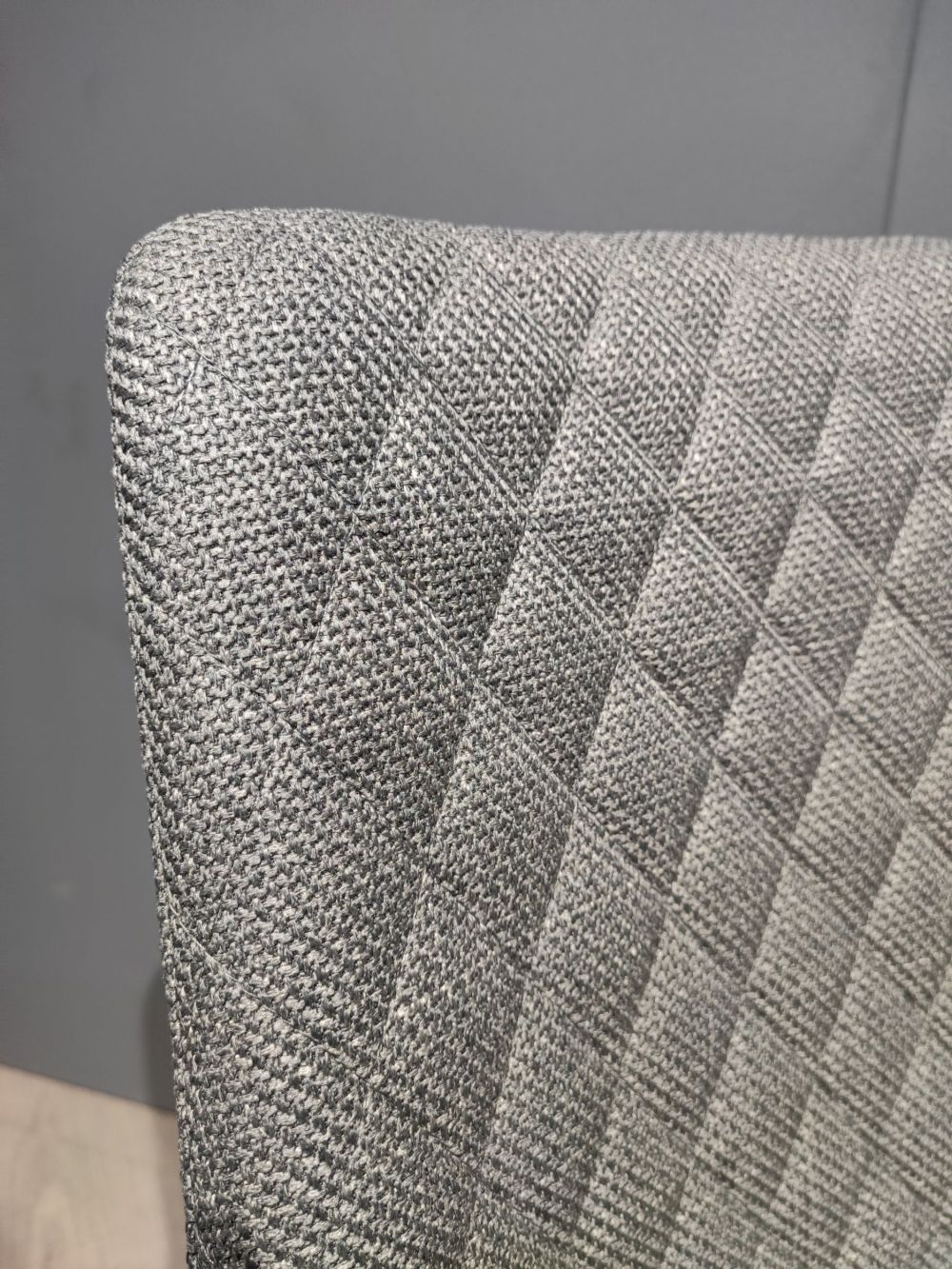 DETTAGLI E FINITURE: struttura in metallo nero opaco, imbottitura trapuntata in tessuto grigio trapuntato sullo schienale