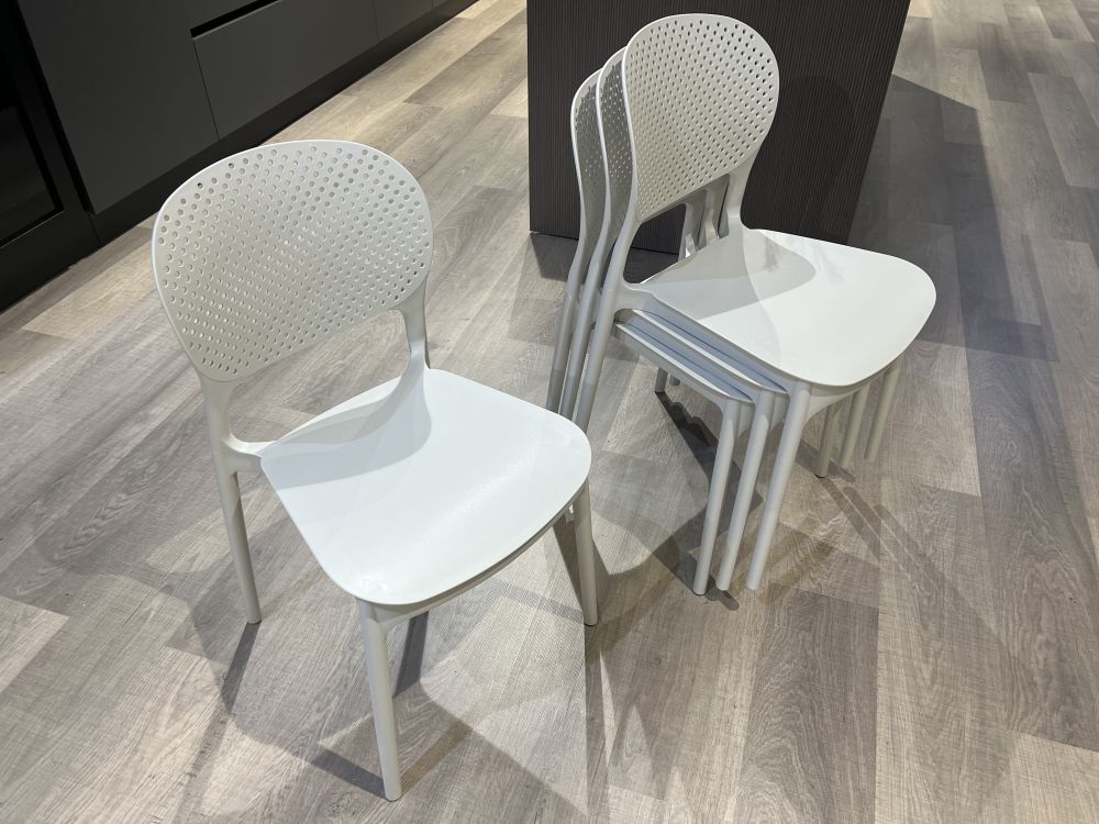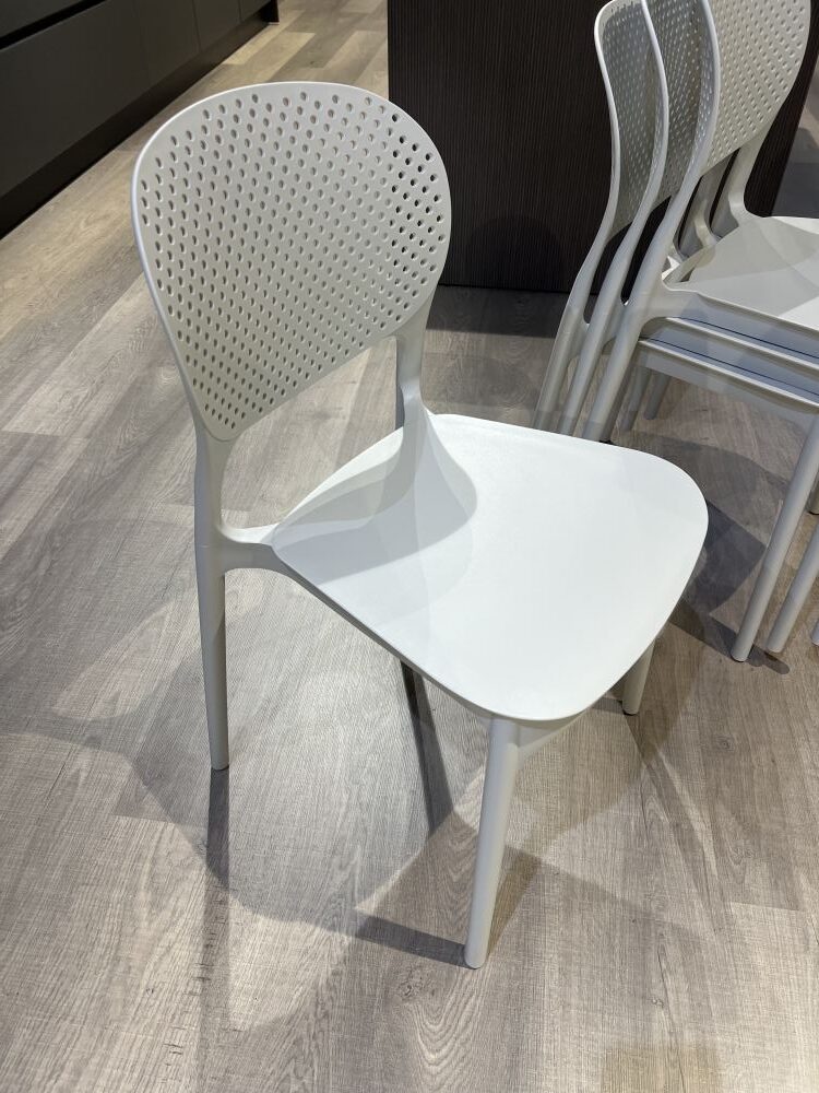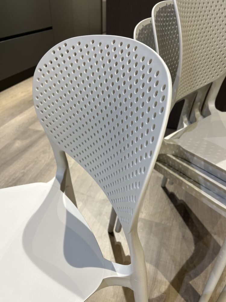 DETTAGLI E FINITURE: sedia polipropilene impilabile con schienale traforato colore bianco 2055