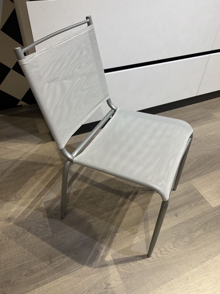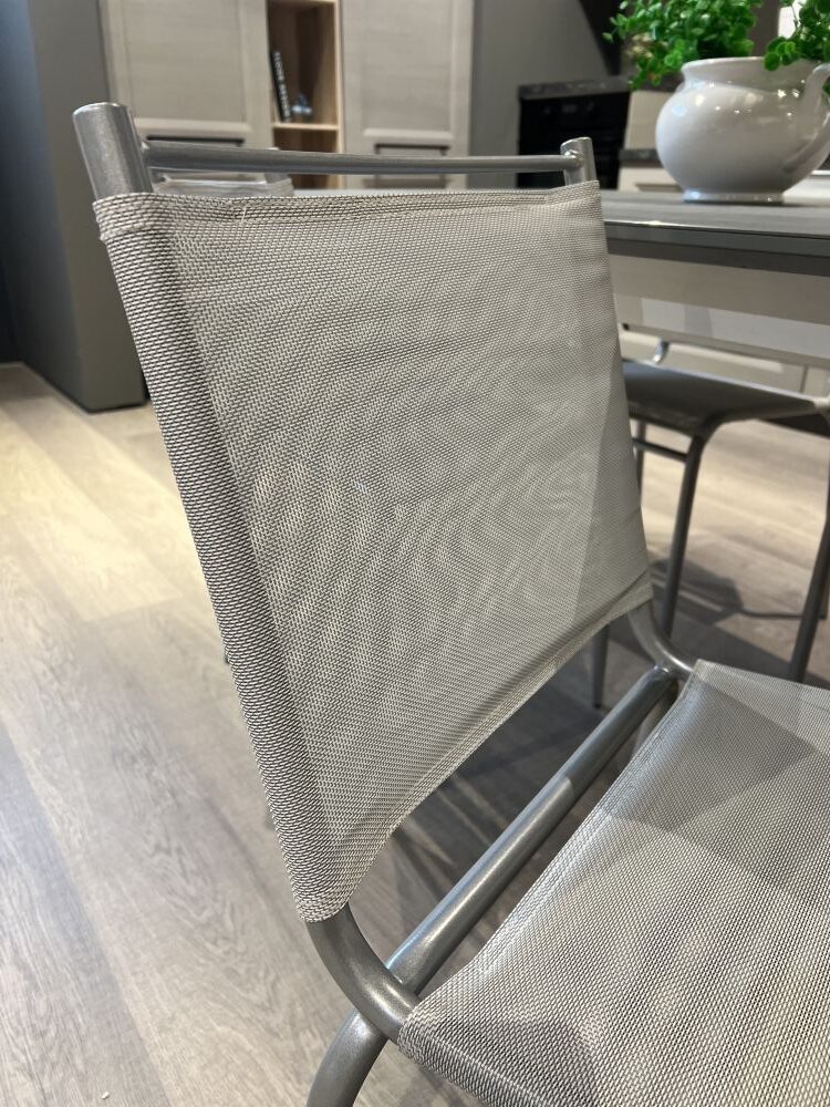DETTAGLI E FINITURE: struttura in metallo verniciato e tessuto plastico colore grigio