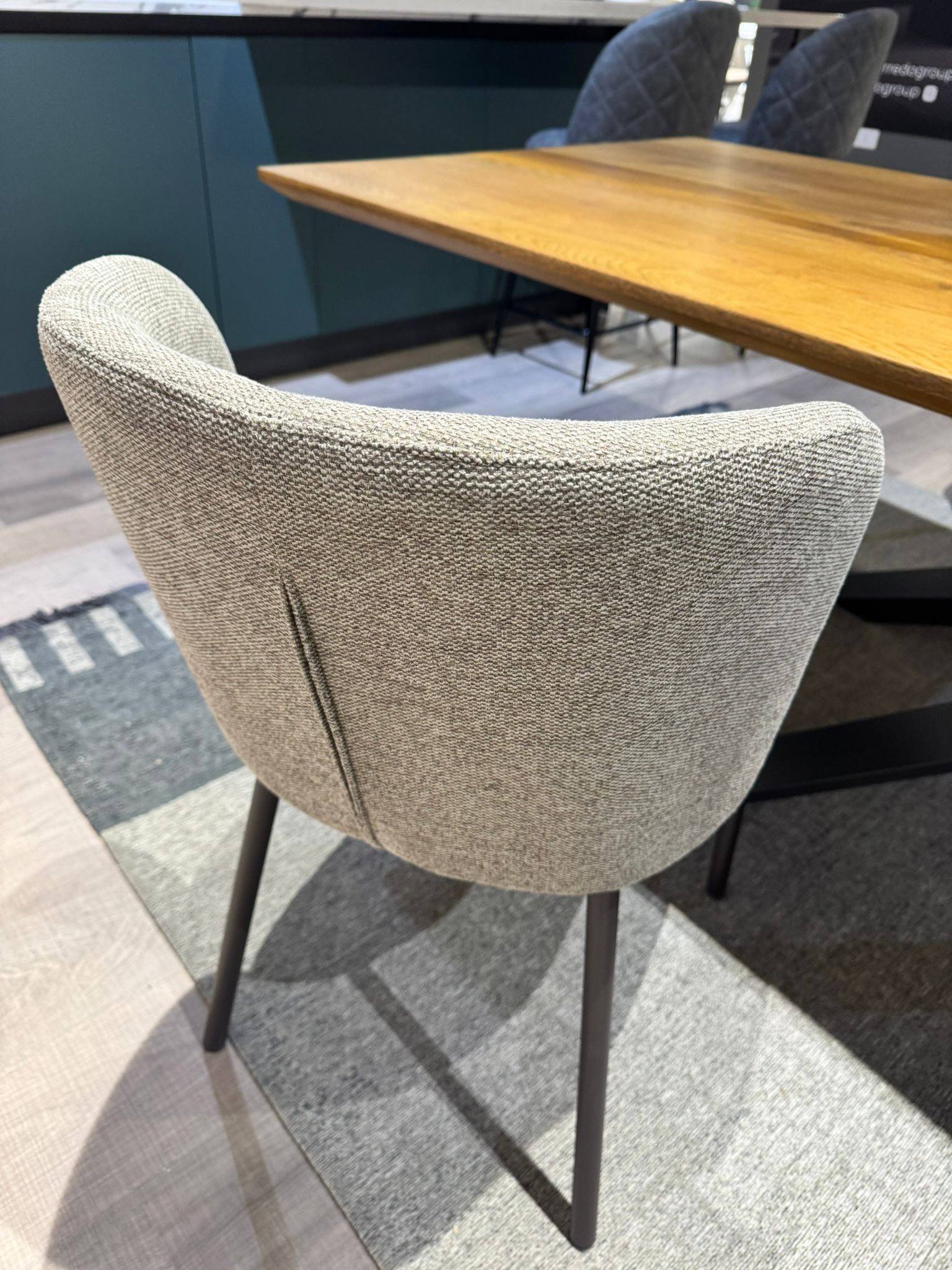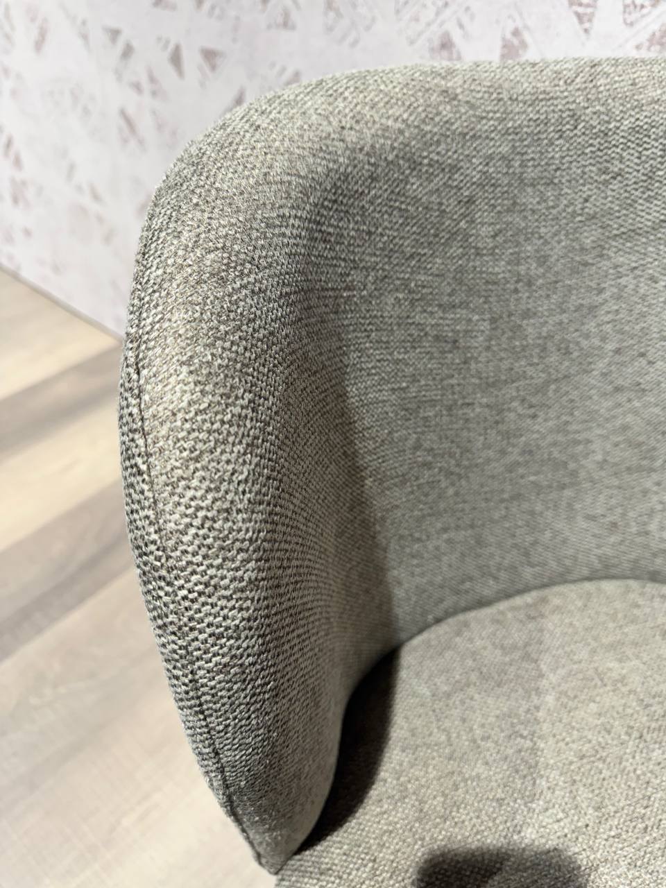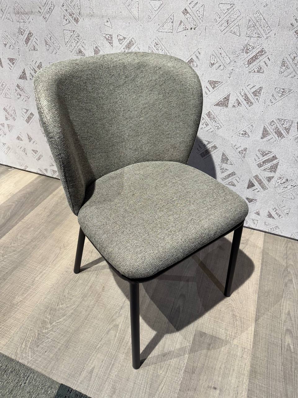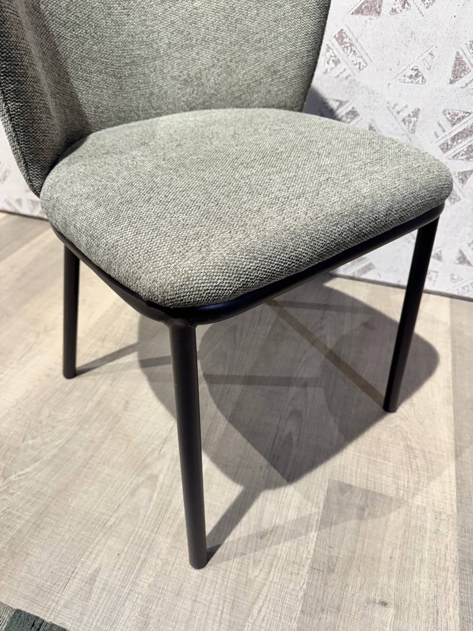 DETTAGLI E FINITURE: tessuto grigio-verde e struttura in metallo nero opaco