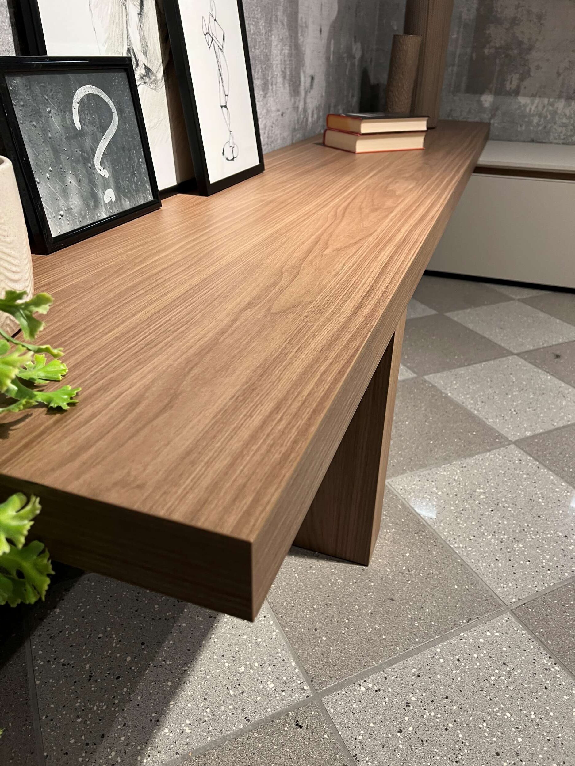 DESCRIZIONE: mobile soggiorno angolare con panchetta ed elemento divisorio in metallo