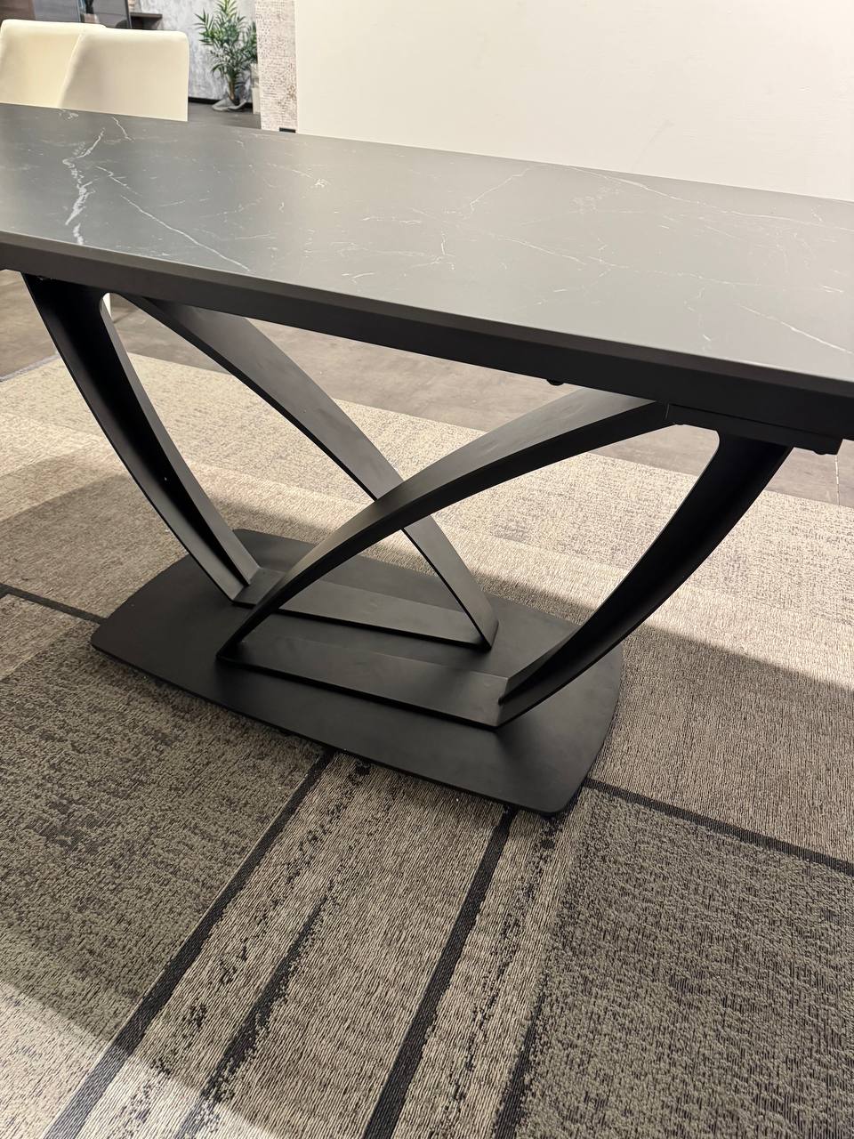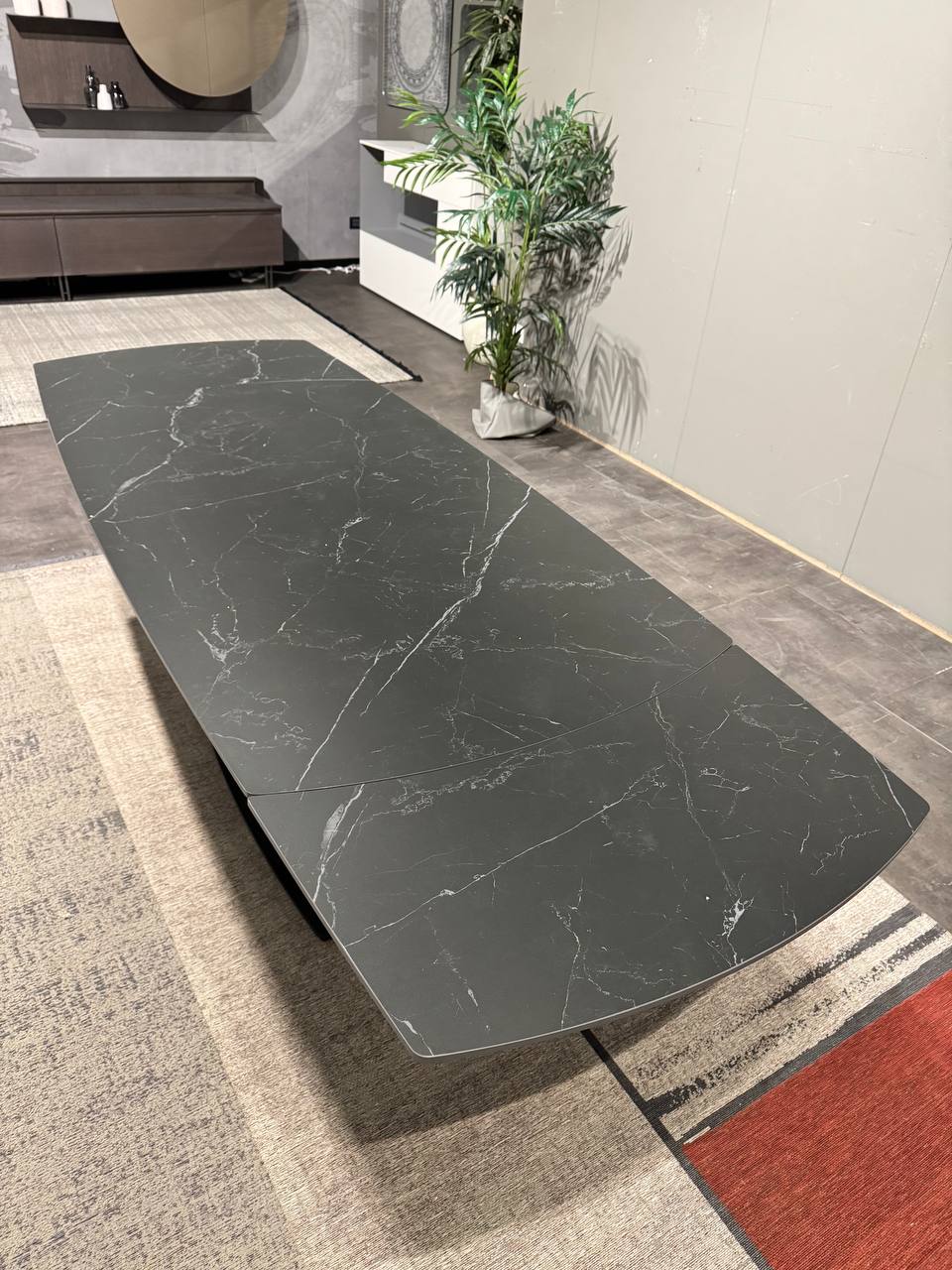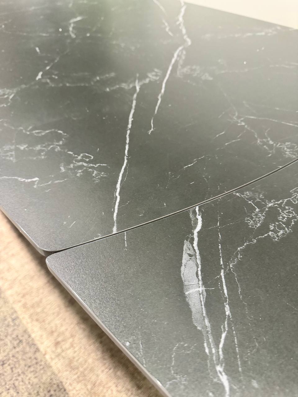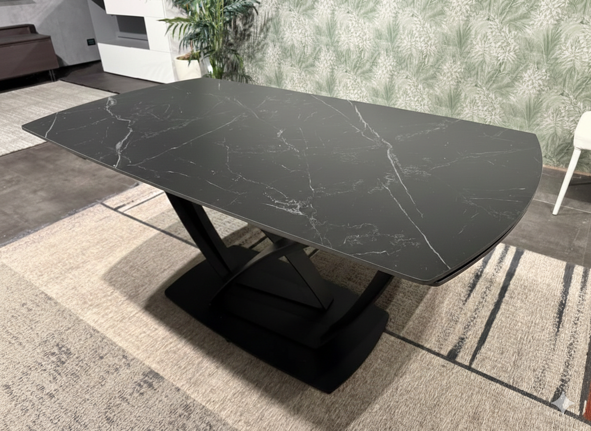 DETTAGLI E FINITURE: piano top in finitura gres effetto marmo, basamento centrale in metallo antracite