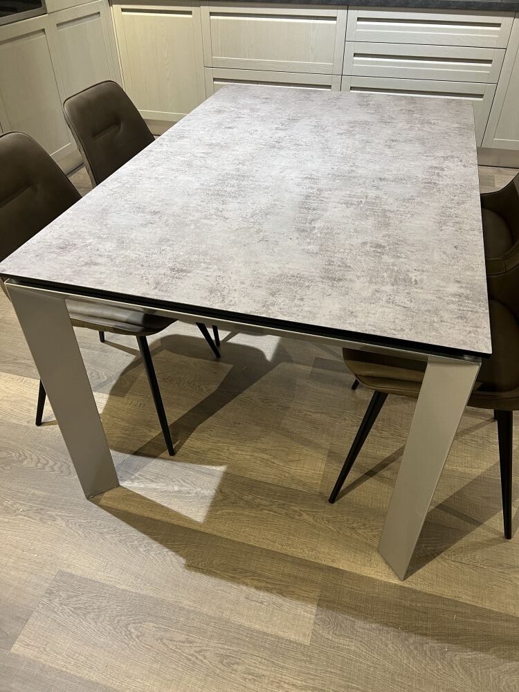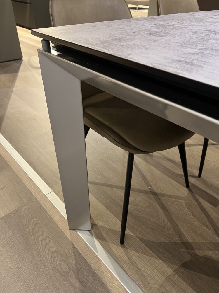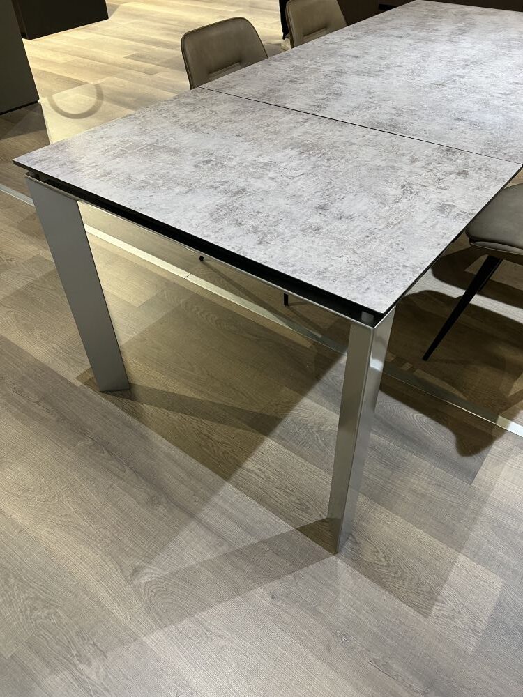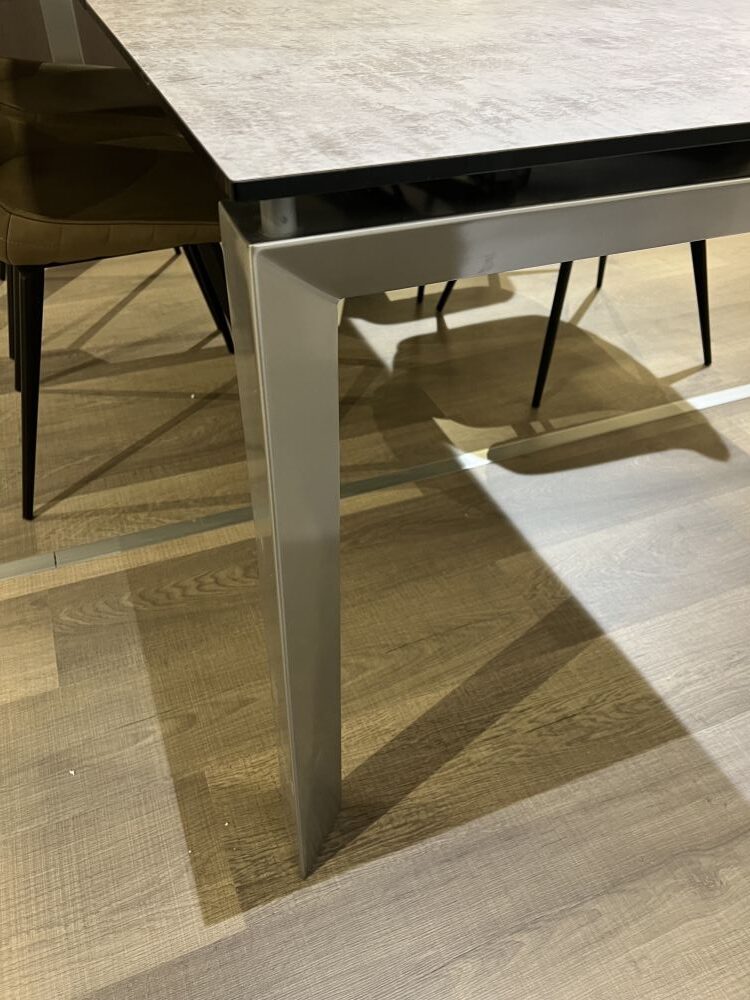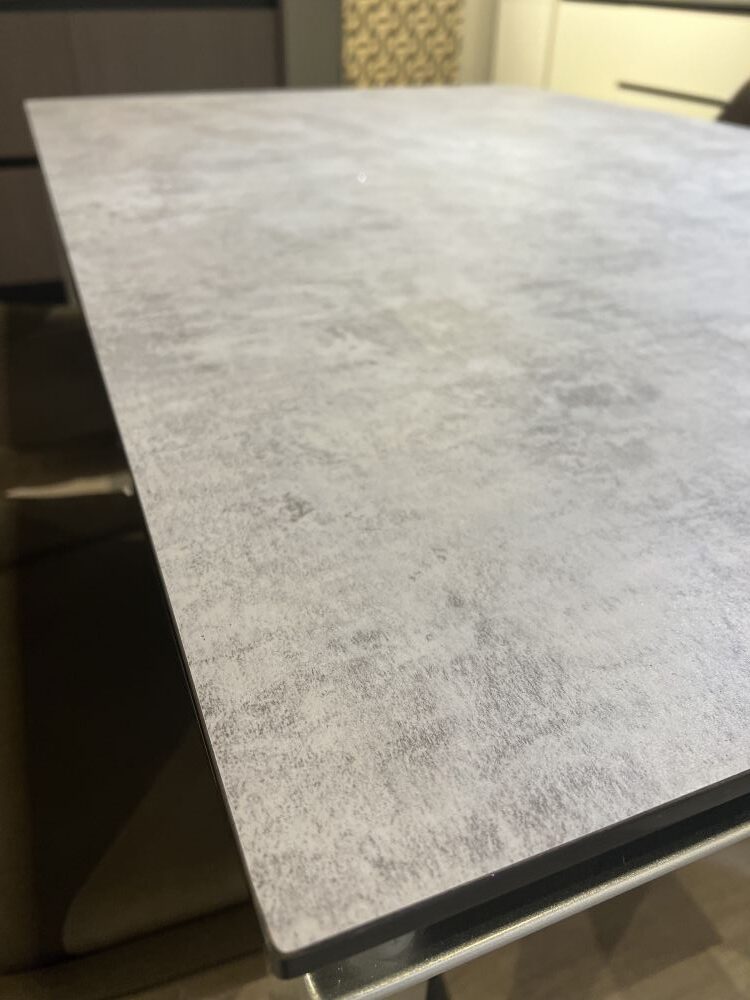 DETTAGLI E FINITURE: struttura metallo finitura argento, piano in vetro effetto cemento
