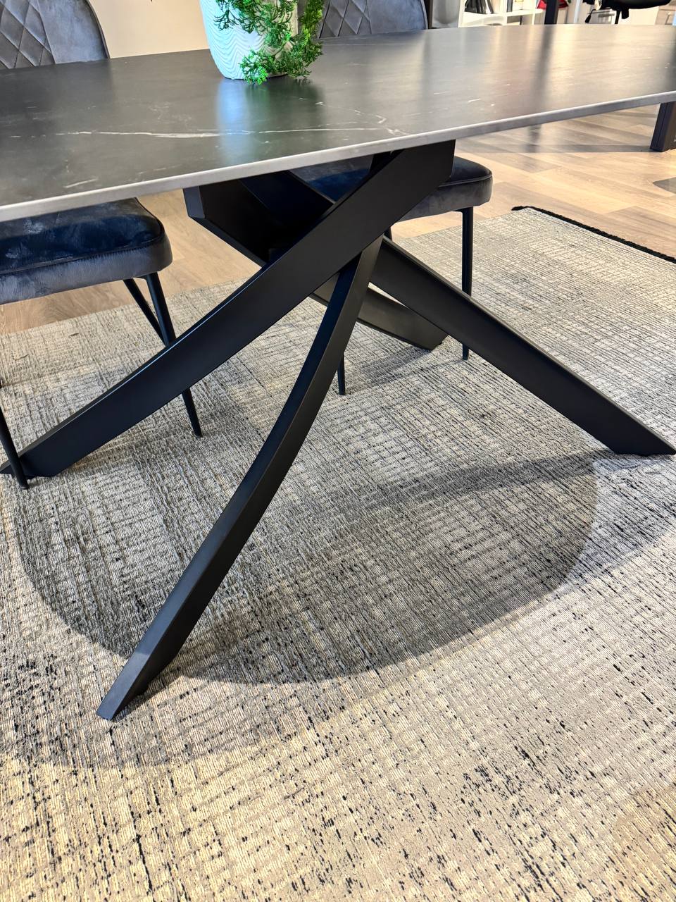 DESCRIZIONE: tavolo fisso con gambe centrali intrecciate